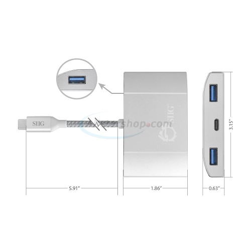 SIIG’s USB-C to 4-Port USB 3.0 Hub with PD Charging 3A/1C expands a single USB-C port from your MacBook®, ChromebookTM, HP laptop computer and more to four USB ports (3 Type-A & 1 Type-C PD) to increase device connectivity options. It instantly adds 3 USB 3.0 ports to your computer for connecting multiple USB powered devices simultaneously such as mobile phone, mp3 player, flash drive or digital camera and more. An advanced USB-C Power Delivery (PD) port is also provided to let you power charge your laptop with a compatible power adapter or to connect a USB-C enabled device for fast data synchronization. Compact and lightweight design with built-in woven braided cord enhances portability and durability. It is an ideal USB port expansion solution for home, office or on-the-go to improve your computer’s connectivity performance for greater efficiency and productivity.