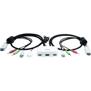 TRENDnet's 2-Port HDMI KVM Switch, model TK-215i, controls two computers (with an available HDMI port) with one set of console controls. No driver installation required, simply plug in the integrated cables to share two computers with a full HD 1080p display. The TK-215i supports HDMI and 3.5 mm analog audio and features an ergonomic computer toggle switch.