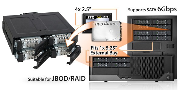 • Icy Dock ToughArmor MB607SP-B (4 x 2.5") SATA HDD/SSD Mobile Rack