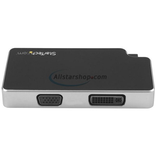 Instead of carrying three separate video adapters in your laptop bag, this 3-in-1 adapter gives you all the video outputs you'll need. With VGA, DVI and HDMI outputs, this adapter lets you connect from your laptop's USB Type-C port to almost any boardroom or classroom display, without the inconvenience of carrying a separate adapter for each display type.