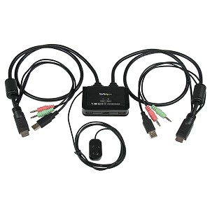 The SV211HDUA 2-Port HDMI Cable KVM Switch with Audio and Remote Switching Control lets you control two HDMI, USB equipped PCs with a single monitor, keyboard, mouse and audio peripheral set.