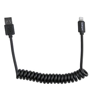 The USBCLT60CMB Black Coiled Lightning to USB Cable for iPhone®, iPod®, and iPad® can comfortably be stretched out to up to 0.6m/2ft to reach your mobile device and when compressed can be tucked out of the way to provide simple, tidy connections – great for charging in your car (requires USB charge port).