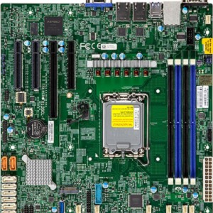 The Supermicro X13SCL-F motherboard supports an Intel Xeon 6300-series/E-2400 or 12th Gen Pentium processor with up to eight cores and a thermal design power (TDP) of up to 95 W. Built with the Intel C262 chipset, this motherboard supports up to 128 GB of ECC UDIMM DDR5 memory with speeds of up to 4400 MT/s in four memory slots. It features PCIe 4.0 slots, PCIe 5.0 slots, SATA 3.0, dual 1 GbE LAN ports, a Trusted Platform Module (TPM) header, and a M.2 slot. The X13SCL-F is optimized for entry-level general purpose computing with four PCIe slots, which is ideal for cloud storage.