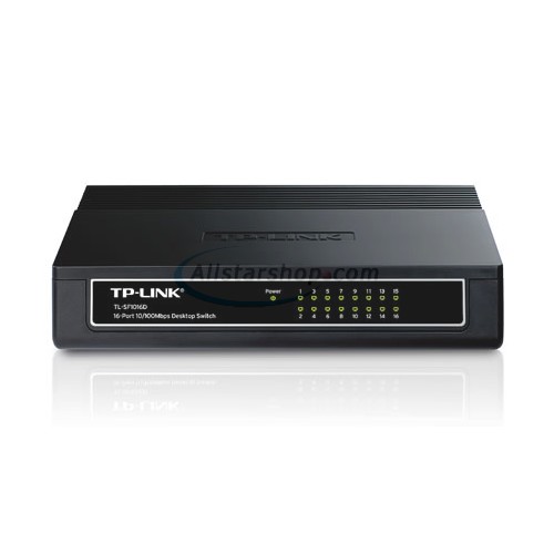 TL-SF1016D Fast Ethernet Switch provides 16 10/100Mbps Auto-Negotiation RJ45 ports. All ports support Auto MDI/MDIX function, eliminating the need for crossover cables or Uplink ports. Featuring non-blocking switching architecture, TL-SF1016D forwards and filters packets at full wire-speed for maximum throughput. With 10K Jumbo frame, the performance of large files transfers is improved significantly. And IEEE 802.3x flow control for Full Duplex mode and backpressure for Half Duplex mode alleviate the traffic congestion and make TL-SF1016D work reliably.