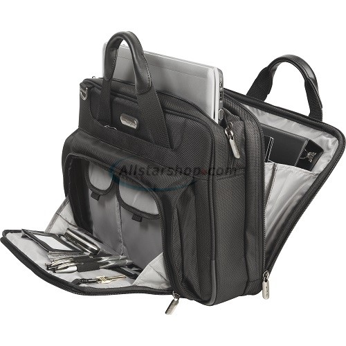 The Targus Patented Checkpoint-Friendly 14" Corporate Traveler case is designed to help you clear airport security without removing your laptop from the bag. This case is specially designed to split down the middle, thereby isolating the laptop on the one side to allow for clear x-ray scanning. Designed to fit 14" widescreen laptops and weighing just over 3 pounds, this case features lightweight and durable ballistic 1680 denier nylon fabrication and also includes the patented SafePort® Air Cushion System to help prevent drop damage. This protection system features adjustable cushions inside of the case to protect your laptop and provide a snug fit for smaller laptops. The case features a dedicated file section, zip-down workstation with business card holder, pen loops, key clip and multiple accessory compartments to keep items organized. For added comfort, the case includes a padded ergonomic shoulder strap with non-slip coating to keep the pad in place on your shoulder. The Targus Checkpoint-Friendly 14" Corporate Traveler is designed to expedite your airport security experience and withstand the wear and tear of everyday business travel.