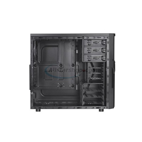 The perforated front-top panel has implemented one data transfer SuperSpeed USB 3.0 port along with one standard USB 2.0 port, a HD microphone and headset jacks, to grand direct access when needed.